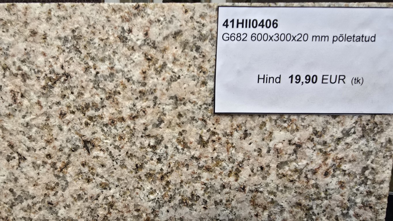 | Lisainfo | Graniit-põletatud- ei ole libe-30 x 60 cm, paksus 2 cm - 5,5 tk=1 m2, 38 tk=7 m2-kasutus sees kui väljas- põrandad-seimad jne |