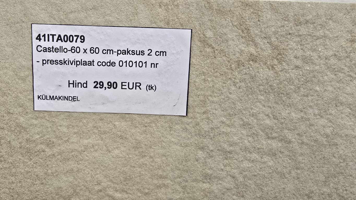 | Lisainfo | Kattekiviplaat-presskivi-mõõt 60x60 cm - paksus 2 cm-kasutuskohad sees ja väljas-põrandad-aiateed-terrassid jne jne |